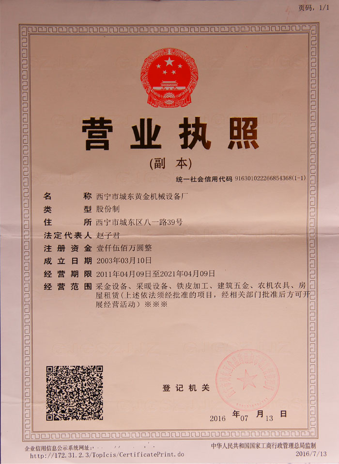 青海西寧黃金機械設備有限公司成立于1996年,原址為青海省西寧市城東區湟中路 72號(黃金賓館旁) ,現搬遷至青海省海東市平安區河湟新區高鐵南路102號,是青海一家生產采金機械設備為主的企業。是集采礦、采金設備制造、烤箱、鐵床加工、大中型機械設備生產以及對外承接各種五金深加工的中等規模企業...